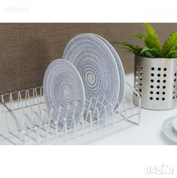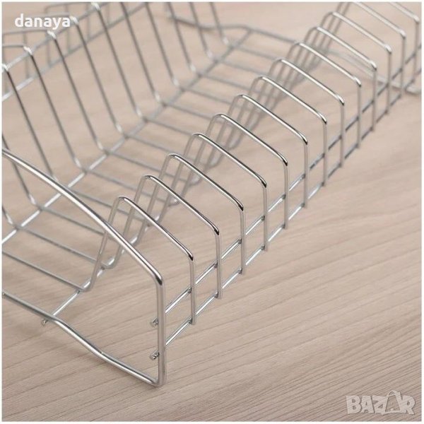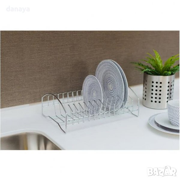Кухненски сушилник за съдове с 14 отделения. Практично решение за малки кухни и пространства. Разстоянието между отделенията е около 2 см. Изработен от метал с хромирано покритие.
