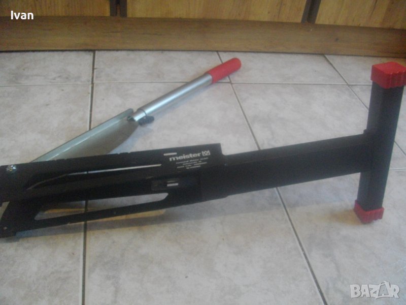 Малка, удобна ръчна гилотина с ергономични размери и олекотен дизайн за рязане на ламиниран паркет/ламинат, професионален модел на немският концерн Мейстер.