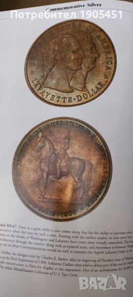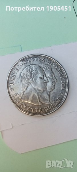 1 долар 1900г.ген.Лафайет и Джордж Вашингтон Сребро Сащ.Rare.Монетата е в много добро състояние Възпоменателна монета.Уникално сребро.Сащ.Много нисък тираж.При интерес има и други.Юбилейни.