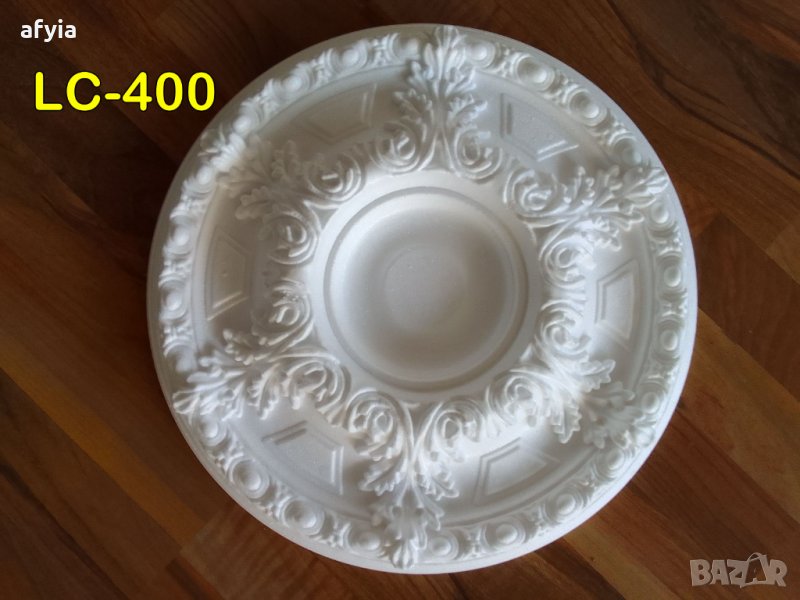 Център за полилей (розетка) от EPS полистирол, бял, високо качество, плътност и гладка повърхност. Отворът за свързващи кабели се изрязва при монтажа. Могат да се боядисват с латекс или с бои на водна основа.
