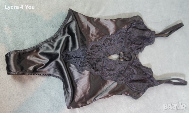 Asos Design 75B черно еластично сатенено боди с дантела.