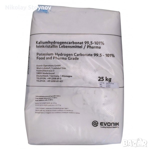 Имам удоволствието да Ви предложа калиев карбонат от най-високо качество произведен от Evonik Industries AG, която е борсова немска компания за специализирани химикали със седалище в Есен, Северен Рейн-Вестфалия, Германия. Това е втората по големина химическа компания в Германия и една от най-големите компании за специализирани химикали в света. Evonik Industries има около 37 000 служители и извършва дейности в повече от 100 държави. Evonik е основният спонсор на немския футболен клуб