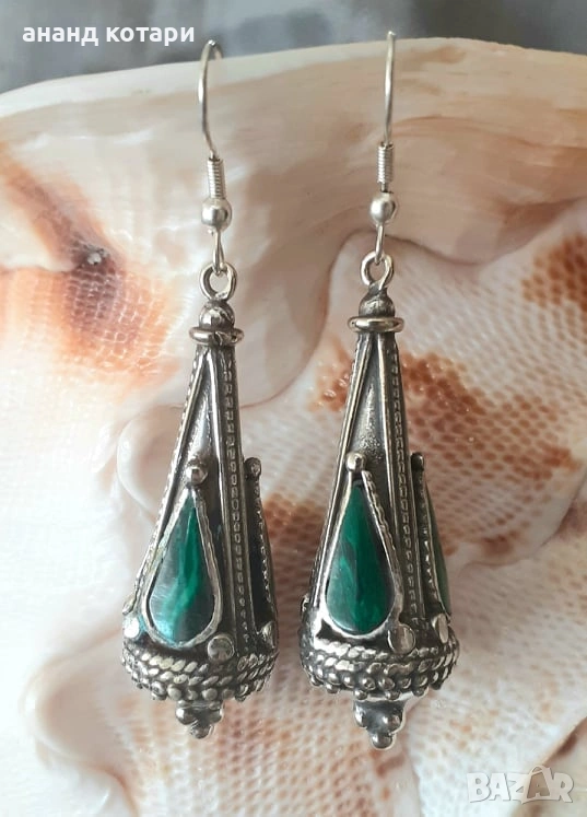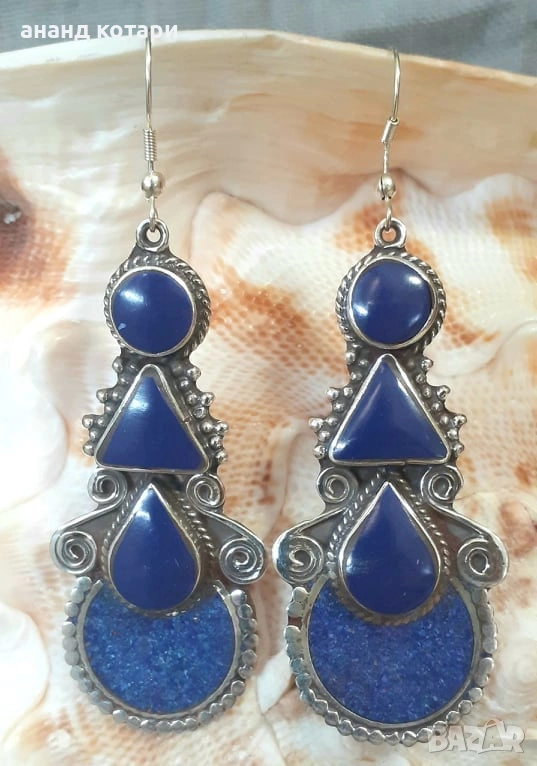 Висящи обеци от Тибет - тюркоаз, лазурит, малахит