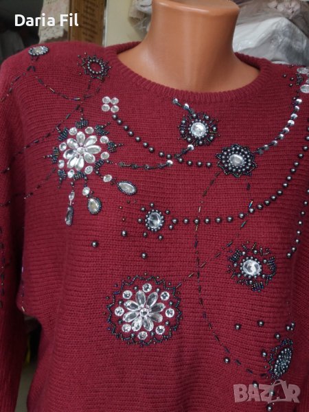 УНИКАЛНО КРАСИВА блуза плетиво в цвят бордо, обшита със сребристи камъни и синци → Обява 39148938