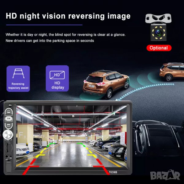 Голям дисплей 7’’инча HD 1080P Stereo FМ Player + Bluetooth.