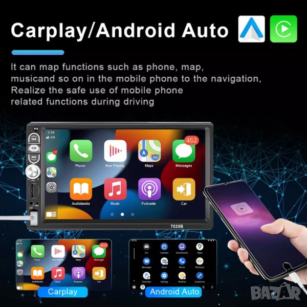 , голям екран, Multimedia za kola, mp3 plear za avtomobil, сдвояване със смартфон, показване на екрана на телефона, блутут, wifi, player, navigaciq,пускане на музика от телефона, tesla, тесла, плеър с андроит mp5 плеър, двоен дин, с дисплей