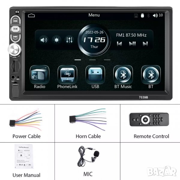 С голям 7 инчов дисплей най-ниска цена за най-добрия и най-мощен модел. Това е най-качествения модел предлаган на пазара с 7’’ инча дисплей на тази цена! Пускане на музика през блутут и AUX смяна на светлината на копчетата, 2 броя USB за флашка или зарядно и слот за micro SD карта мулти тъч бутони и дисплей.