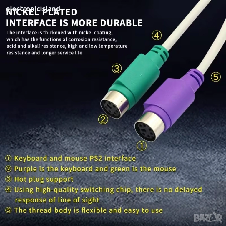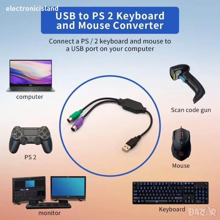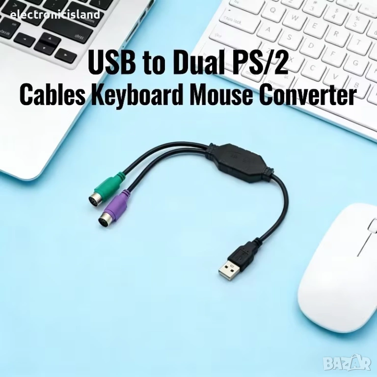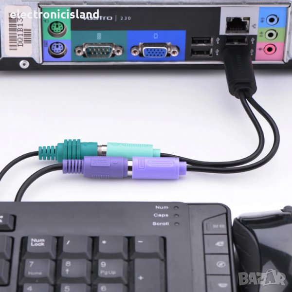 Преходник USB мъжки към двоен PS / 2 PS2 женски адаптер за клавиатура и мишка конектор порт компютър микрофон букса конвертор, контролер за удобство в дома и офиса, ако компютъра ви не разполага с желаните от вас букси, този преходник ще свърши идеална работа.