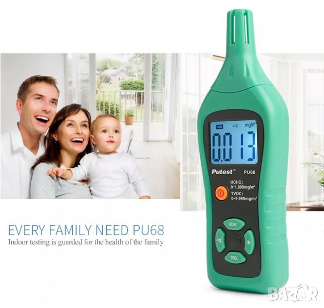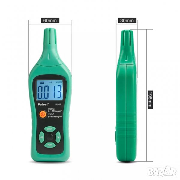 2. Обект на детектор: формалдехид 0,001 mg/m⊃3; TVOC 0,001 mg/m⊃3;