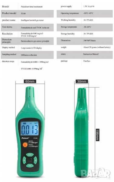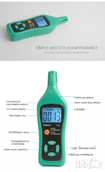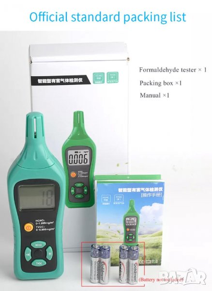 4. Диапазон на откриване: формалдехид (HCHO) 0,000 ~ 1,999 mg/m⊃3;