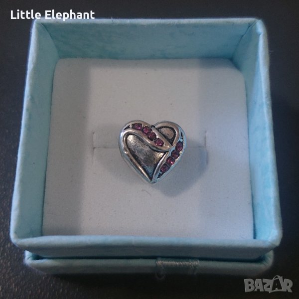 Елемент Пандора сърце с кристали,dark pink/нов → Обява 39153075