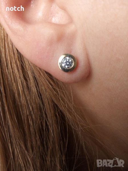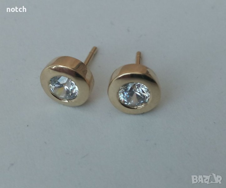 Обеците са изработени от жълто злато 14 карата. Могат да се направят и от бяло злато или сребро и с различен вид камъни. Камъните са 4мм. циркони. Диаметърът им е 7мм.