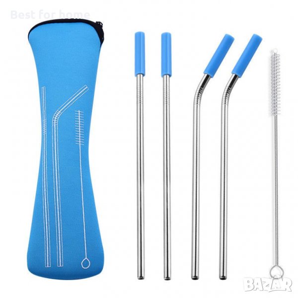 Комплект метални сламки за многократна употреба в неопренова кутия+ накрайници.
