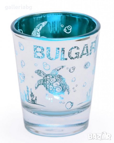 Сувенирна стъклена чаша - шот, декорирана с костенурки и надпис - България.