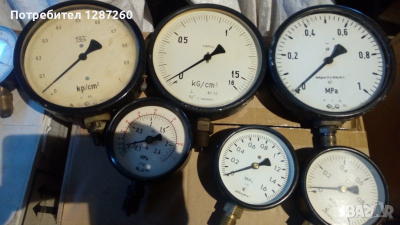 Различни манометри термометри.