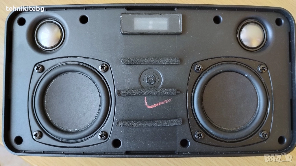 Качествена английска Bluetooth/Блутуут/NFC тонколона с мощност 30 вата , 2 броя титаниеви восокочестотни говорители , 2 броя 2" баса и заден пасивен бас радиатор , батерия с издръжливост до 18 часа като нова (моята не издържа много вече, но може да се подмени с нова, че дори и по-мощна такава), AUX и USB , чисто ново зарядно с английски щепсел . Тонколоната е много запазена и работи отлично , с много добър и силен звук . Лично внесена от Англия . На последната снимка съм махнал металната решетка , за да се видят говорителите , че са здрави .