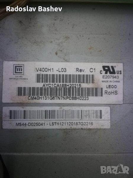T871034.02 1 от телевизор Samsung LE40A536T1F дисплей V400H1-L03 Rev.C1 Борда е гарантирано работещ Демонтиран от телевизор Samsung LE40A536T1F със проблем в дисплея.
