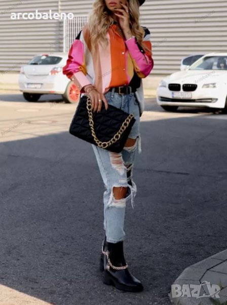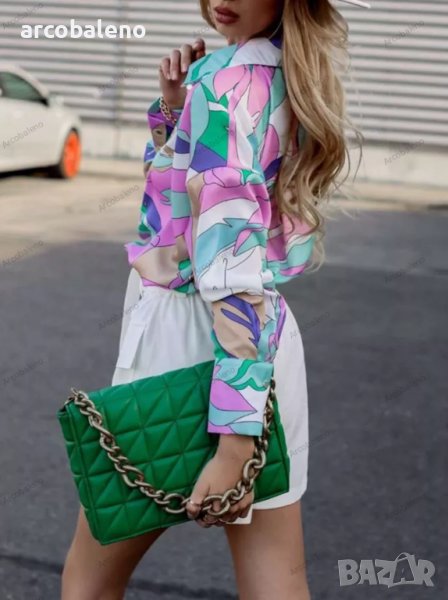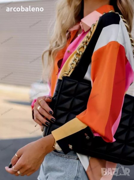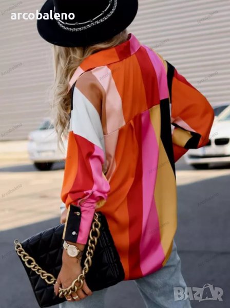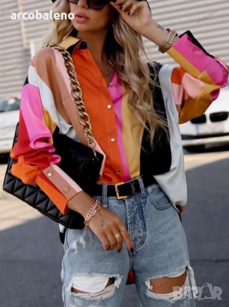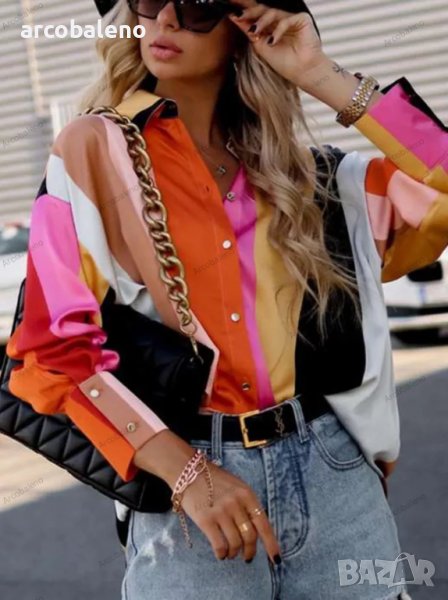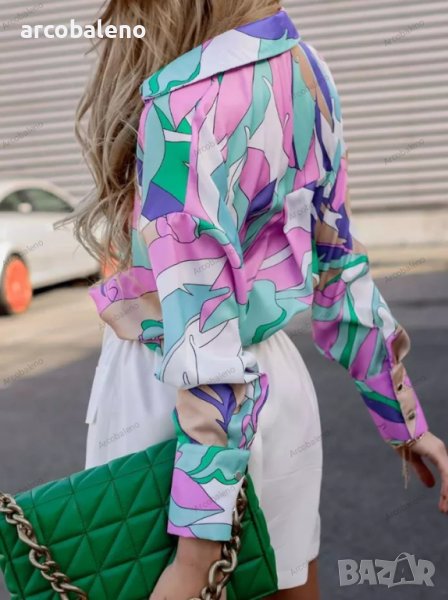 Дамска риза с дълъг ръкав с едноредно закопчаване и щампа, 4цвята