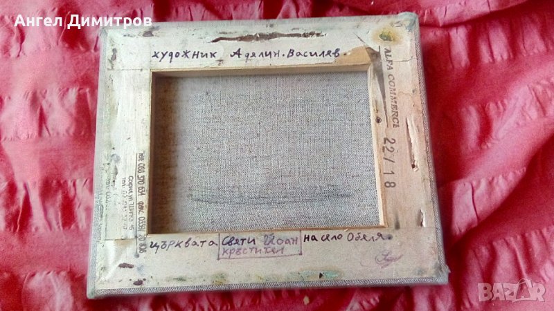 Църквата в Обеля маслена картина платно Аделин Василев , 22-18 см , печста
