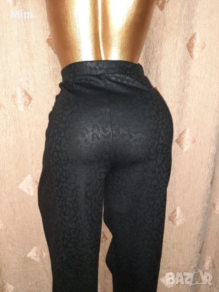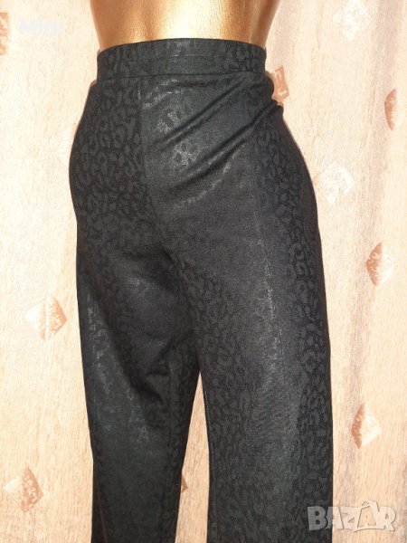 Плътно стегнато трико с имитация на кожен змийски принт. В талията с колан с ластик. Талия 50 до 60 см едностранно, ханш 55 до 65 см едностранно, дължина 100 см ,широчина на крачолите 16 до 20 см едностранно. Нов без хартиен носител.