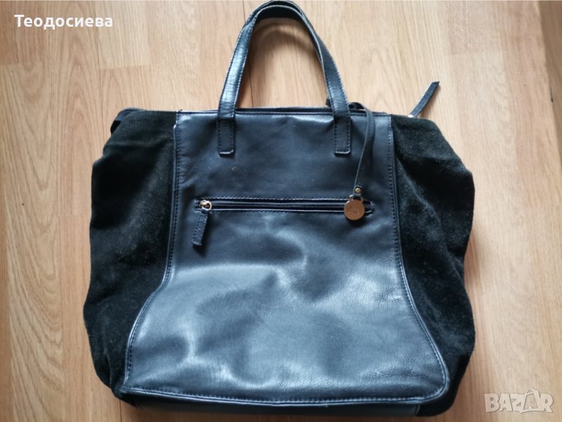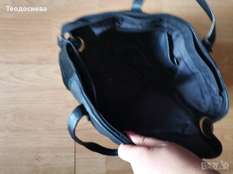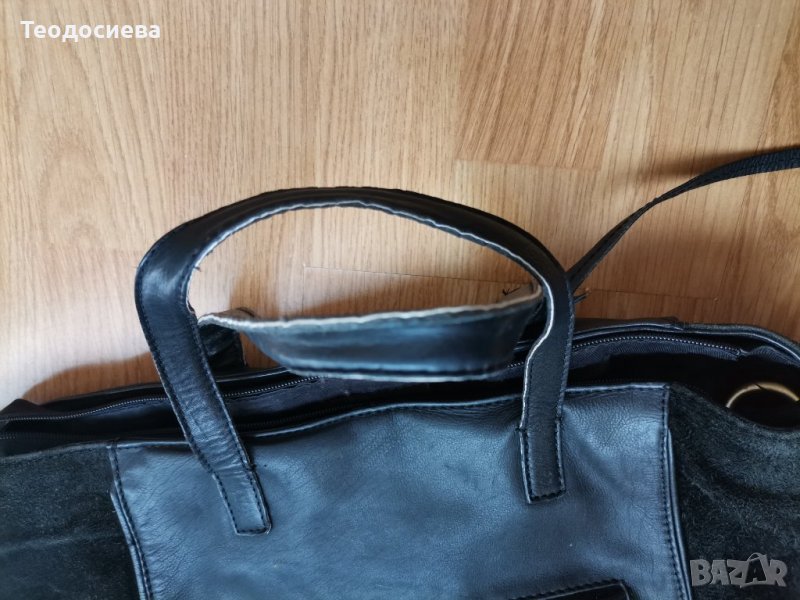 Черна дамска италианска чанта Vera Pelle. С къси дръжки фавбирчо изтрити отстрани. Размери 45×35 см. Кожа и велур. Едно голямо отделение, в него едно отделение с цип и две малки без цип. Много добро състояние.