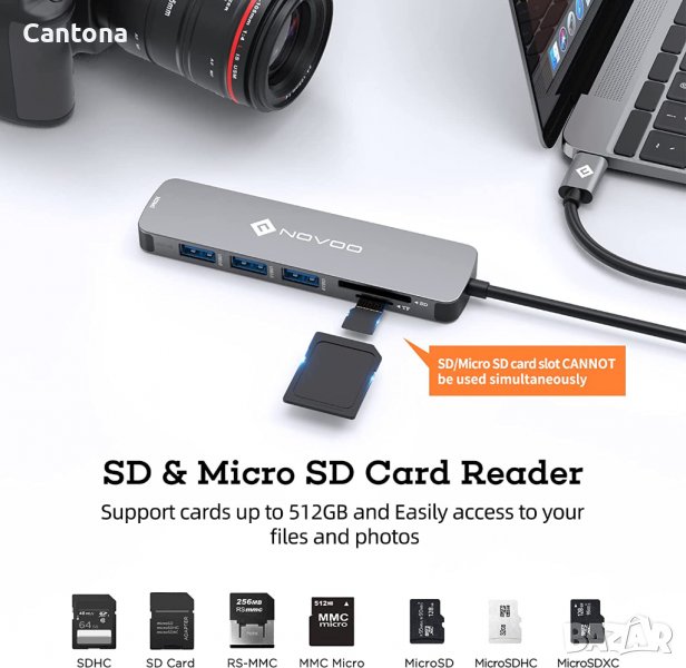 Лесен достъп до файлове от четци на SD и TF карти. СЪВМЕСТИМ с всички нови MacBook/MacBook Pro с USB-C портове, повечето лаптопи с USB C портове