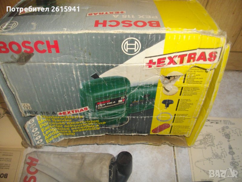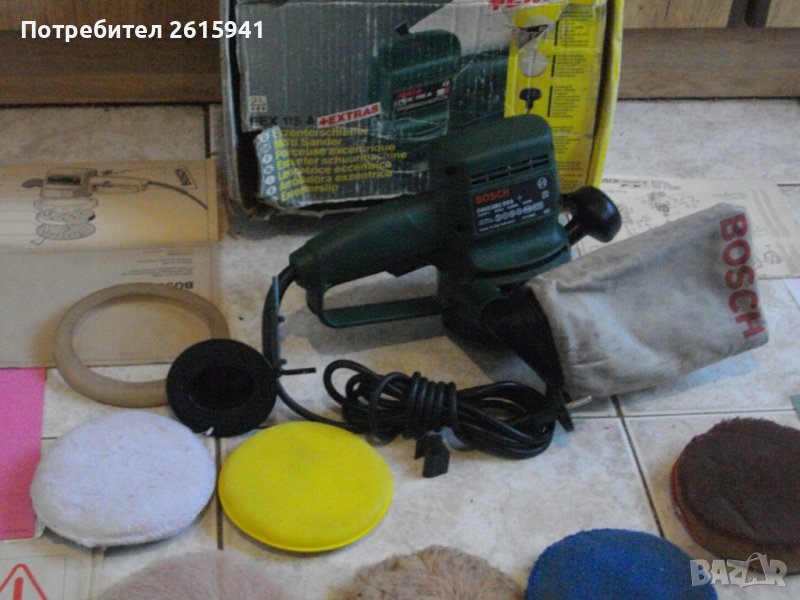 Цена на шлайфмашината/кръгъл ексцентър виброшлайф за шлайфане/полиране BOSCH PEX 115A с пълният си комплект аксесоари от обявата - 299 лв.(152.88 €)