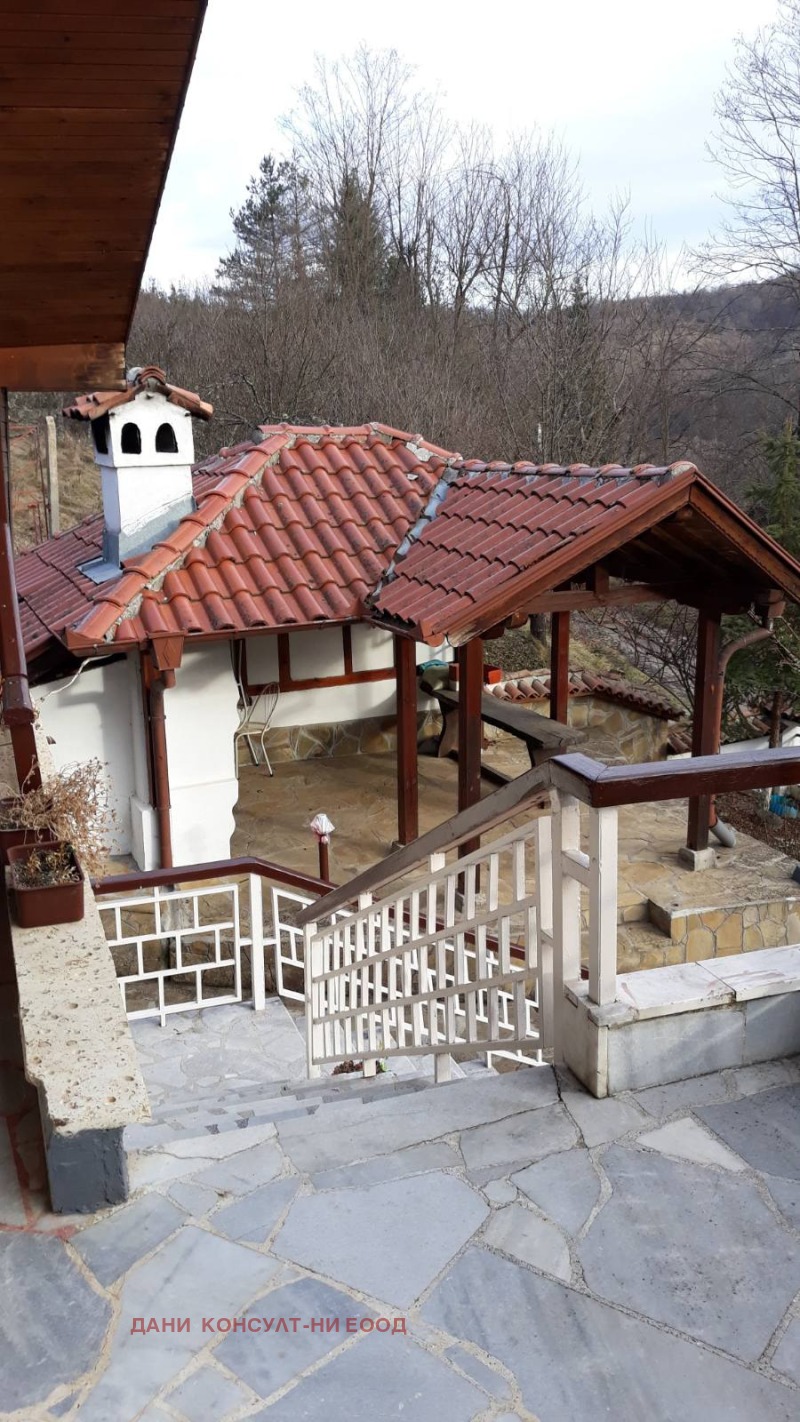 Агенция за недвижими имоти ДАНИ КОНСУЛТ предлага за продажба триетажна монолитна вила с двор в Еленския балкан, с. Дрента. Населеното място се намира на 22 км. югозападно от гр. Елена и на около 60 км. от гр. Велико Търново. Селото е електрифицирано и водоснабдено. Има постоянна автобусна връзка с град Елена. Дрента крие очарование с приказната си природа. Пътят до високо разположеното село е изпълнен със завои, но изключително интересен, с красиви гледки. Благодарение на изключителната природа на Еленския балкан, на запазените традиции, на новоизградените места за отдих, на прочутото гостоприемство и отличните условия за развитие на екотуризъм, селото привлича все повече туристи и гости, любители на природата, които съчетават почивката си с полезни занимания риболов, гъбарство, билкарство, туризъм. Вилата е с РЗП 210 кв. м, монолитно строителство, на три етажа и има следното разпределение: Първи етаж- една голяма/25 кв.м./ и една малка10 кв.м./ стаи, гараж/15 кв.м./, коридор; Втори етаж- просторна трапезария с кухненски бокс, коридор, баня с тоалетна и голяма веранда с прекрасна панорамна гледка; Трети етаж- две спални, баня с тоалетна, коридор, тераса. Връзката между етажите се осъществява посредством вътрешно стълбище. Отоплението е решено от камина с водна риза на твърдо гориво и радиатори във всяко помещение. Имотът е в много добро състояние, пригоден за целогодишно пребиваване, изложение юг/изток, дървена дограма, здрав покрив.