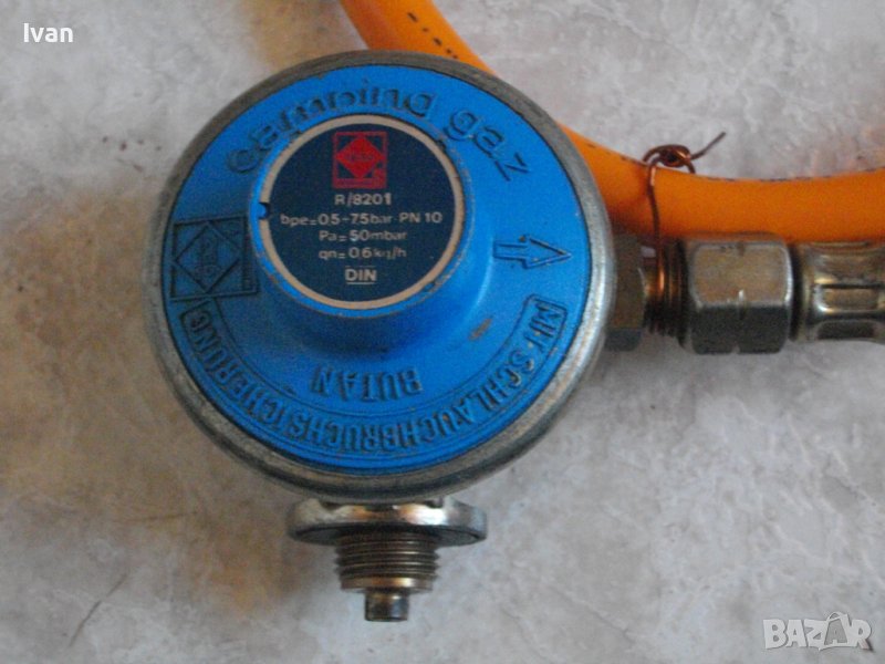 Цена на нов редуцир вентил/клапан син цвят налягане 50 mbar - италиански с нов маркуч - 79 лв.