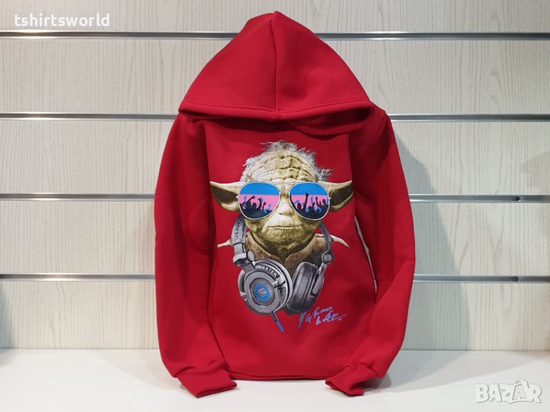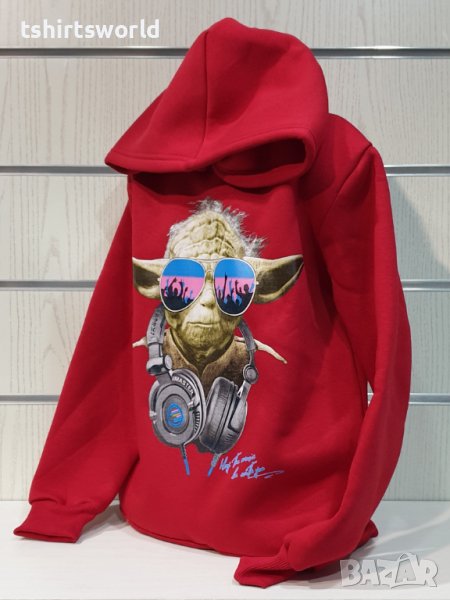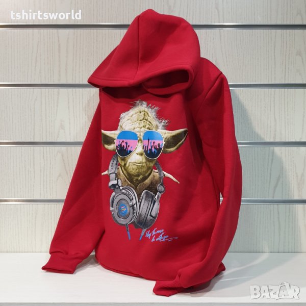 Нов детски суичър с трансферен печат Йода, Star Wars (Междузвездни войни) в червен цвят