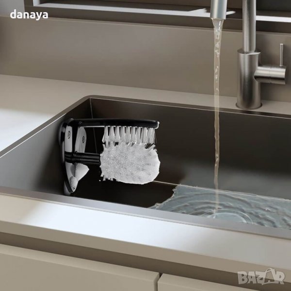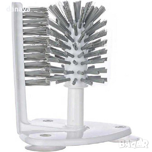 Двойна четка за миене на чаши с вакуумно закрепване за мивката. Това е четка със здрави, средно твърди косми с дължина 2.5 см всеки. Самата четка е висока 17 см и е подходяща за измиване на почти всички видове чаши. Подходяща е за миене на водни чаши, чаши за чай или кафе, също така и винени чаши със столче. В основата си четката има 3 стабилни вакуум вендузи, с чиято помощ можете да я закрепите към всяка една мивка с гладка повърхност. Четката стабилно се прикрепя към мивки от неръждаема стомана (алпака), но може да се закрепи и към други повърхности – например плочки. Лесно разглобяване за бързо почистване.