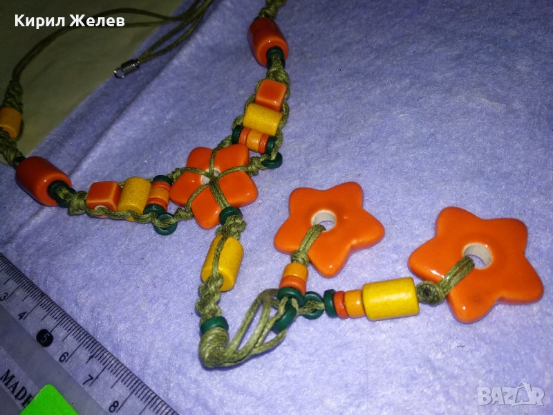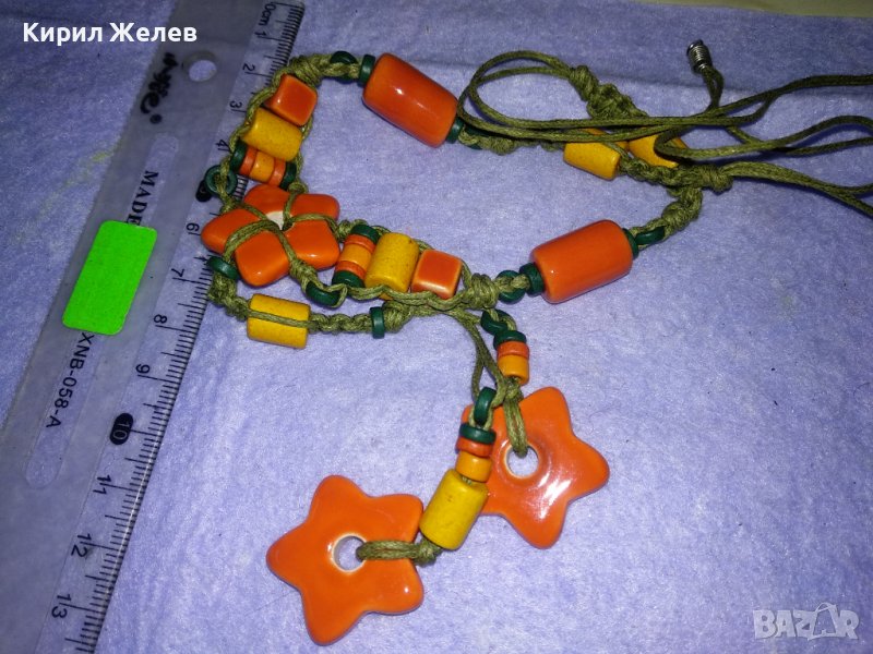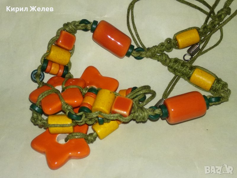 МНОГО ЕФЕКТНО и КРАСИВО ФЕШЪН АРТ КОЛИЕ ЦВЕТНА КЕРАМИКА и ПЛЕТКА ХЕНД МЕЙД УКРАШЕНИЕ 34779