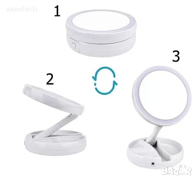 Чудесен аксесоар за всяка дама - двулицево огледало, което се върти, увеличава 10 пъти образа, има инсталирано LED осветление и е лесно за носене навсякъде където отивате.