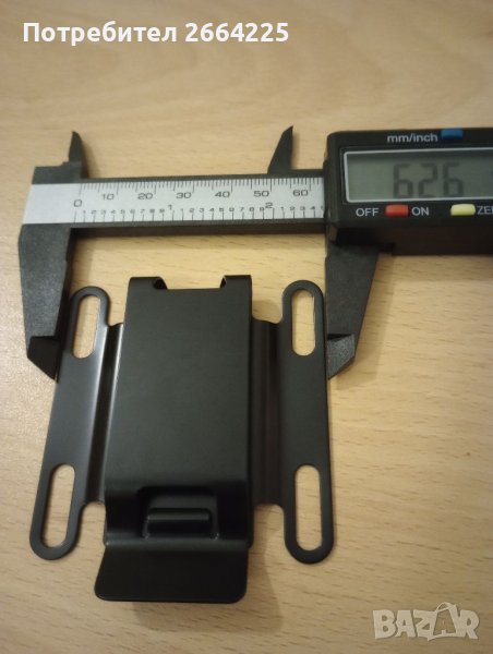 Здрава черна метална щипка с двойно отвори във двете страни, ще се захване здраво за вашата кания , с подарък крепежи. За стандартен тактически колан до около 5 см,за удобно носене на кръст.