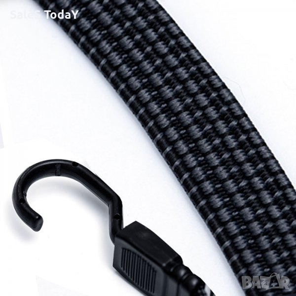 11004 - 60213 Еластичен, плосък ластик с куки за багаж. Пластмасови куки. Приложение: за връзване на багаж, уреди, инструменти; в/у багажник на автомобили, микробуси, камиони и т.н. Размери: 18 мм х 150 см. Сила на Опън: 25 кг