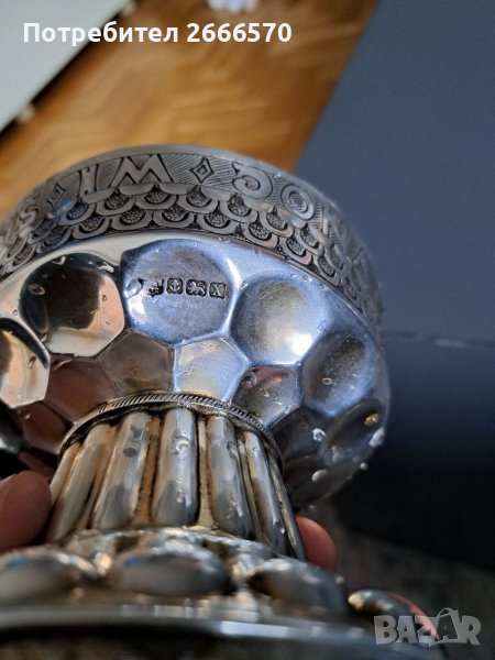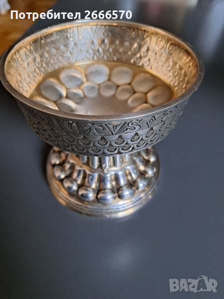 СЪСТОЯНИЕ: В много добро състояние е, особено като се има предвид, че е на 100 години - няма вдлъбнатини, нацепвания или следи от ремонт - има износване на позлата. Това фино сребърно бокалче очевидно е било грижливо пазено през всичките тези години. Всякакви тъмни петна и т.н. са отражения или части от патина, свързана с възрастта. Среброто е полезно за организма пиейки от сребърна чаша вие си обогатявате организма със сребърни ьони и ставате устойчиви на паразитни и микробни инвазий защото среброто е естесвен природен и напълно безвреден антибиотик също се съдържа сребро и в чесъна затова го водят като полезно растение друго растение не съдържа сребърни ьони само чесъна за това и като разтъркате повърхността на среброто мирише на чесън , здравето е най голямото богатство
