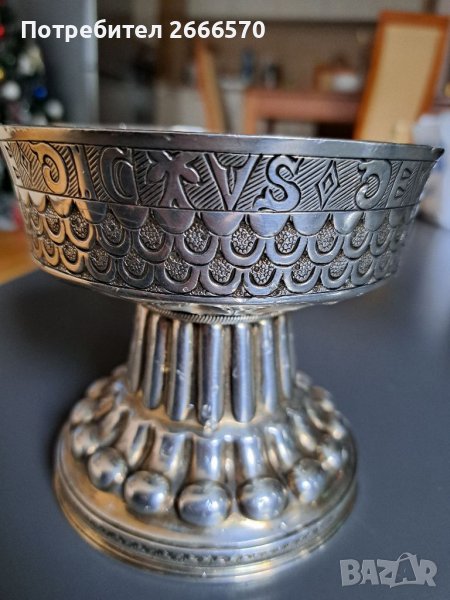 Предлага се тази красива, тежка 331 г, антична реплика на прочутия потир с чаша „Тюдор Холмс“ от позлатено