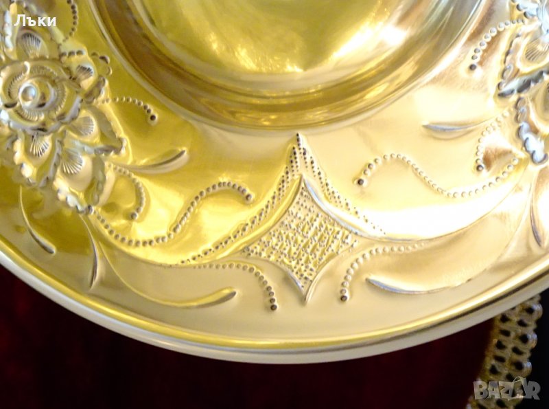 релефно ковани рози и красиви барокови орнаменти.Стои стабилно на три елегантни