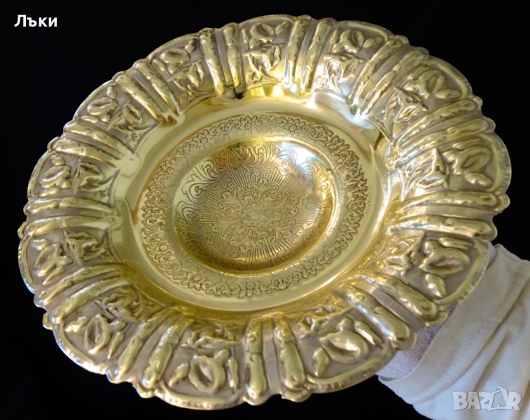 орнаменти,а периферията на съда е декорирана с релефно ковани флорални