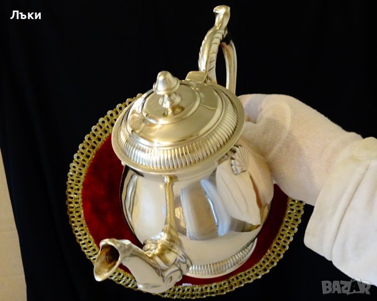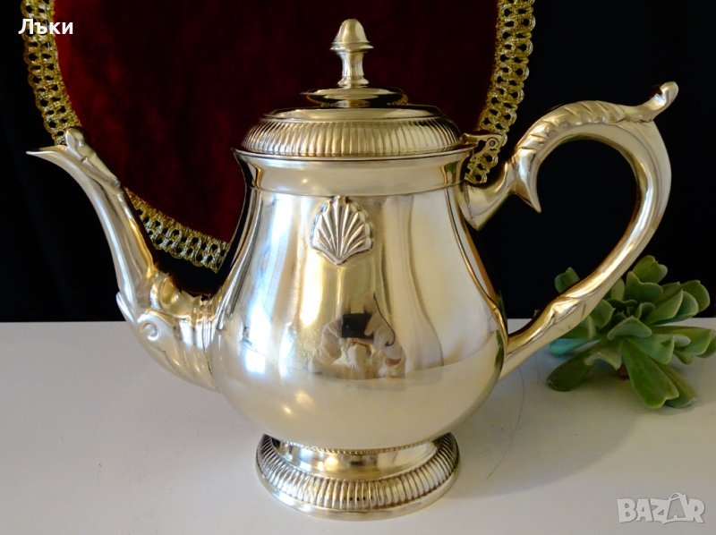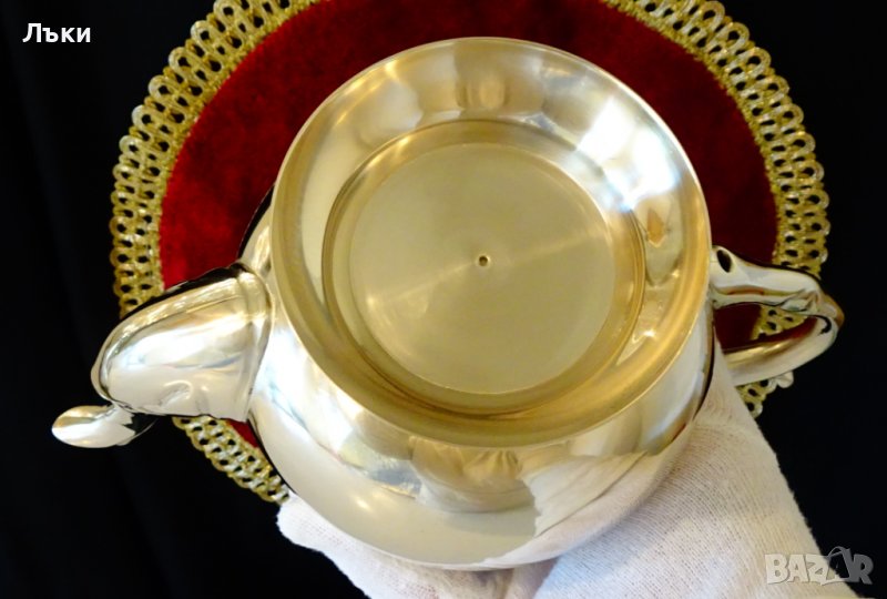 Старинна английска кана,чайник,майсторска ръчна изработка отмасивен високо качествен бронз с кристална гладкост и огледален блясък.Декорирана с красив релеф и ефектно извита дръжка.Височина 18 см.,дължина 25 см.,диаметър 13 см.,тегло 940 гр.Вместимост 1 л.