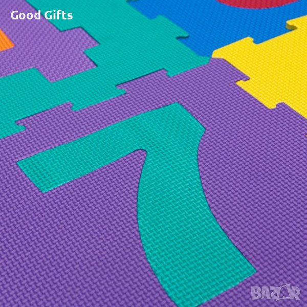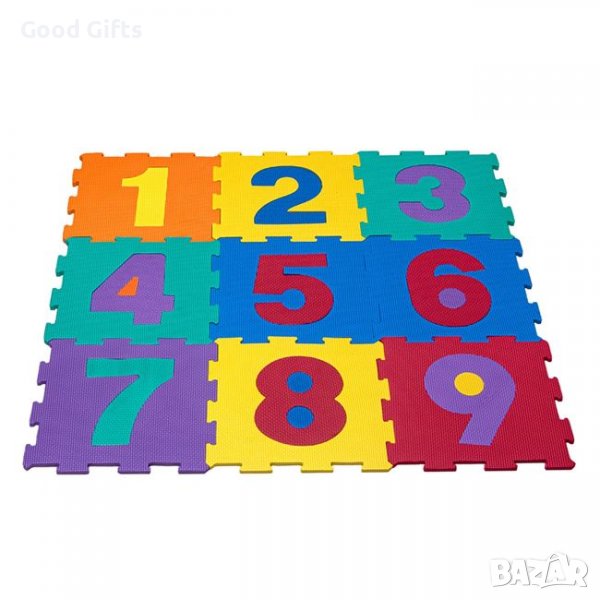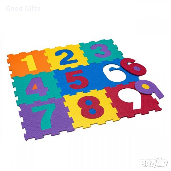 Подов пъзел с пенести меки цветни части, които се сглобяват като пъзел и създават удобна повърхност за безопасна детска игра. С фигури на числа, които обучават и забавляват детето