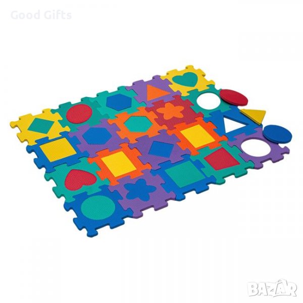 Подов пъзел с пенести меки цветни части, които се сглобяват като пъзел и създават удобна повърхност за безопасна детска игра. С геометрични фигури, които обучават и забавляват детето.
