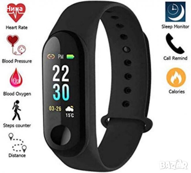 Смарт гривната M3 разполага с LED дисплей, който показва часа, извървените крачки, сърдечния ритъм, Call/Sms известяване, аларма, ниво на батерия. Силиконовата каишка е със специално противоалергично покритие, самото устройство е влагоустойчиво, а бутонът за управление е супер тънък. Батерията е издръжлива, осигуряваща до 15 дни работа без презареждане.