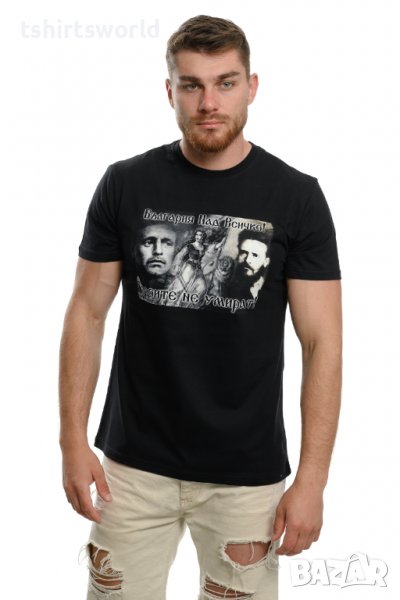 Нова патриотична мъжка тениска с дигитален печат България над всичко - Героите не умират!