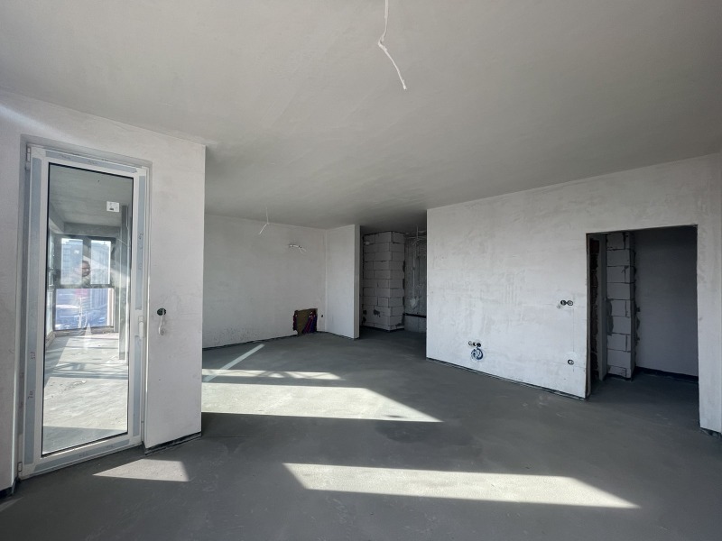 АПАРТАМЕТЪТ се намира на 6-ти етаж, вътрешен и покрит. Архитектите са помислили за всичко, свързано с Вашето удобство! Изложението е югоизточно, а през френските прозорци прониква огромно количество светлина. Холът е с обособен кухненски бокс и остъклена тераса и големина от 43м2! имотът разполага с две спални, една от които с дрешник и три санитарни помещения.