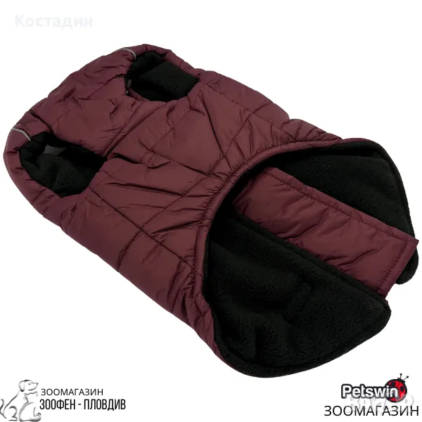 Пухкава Жилетка/Яке - за Куче - с Поларена Подплата - XS, S, M, L, XL размер - Бордо разцветка - Pet-Interest