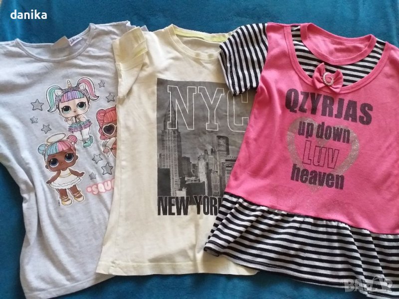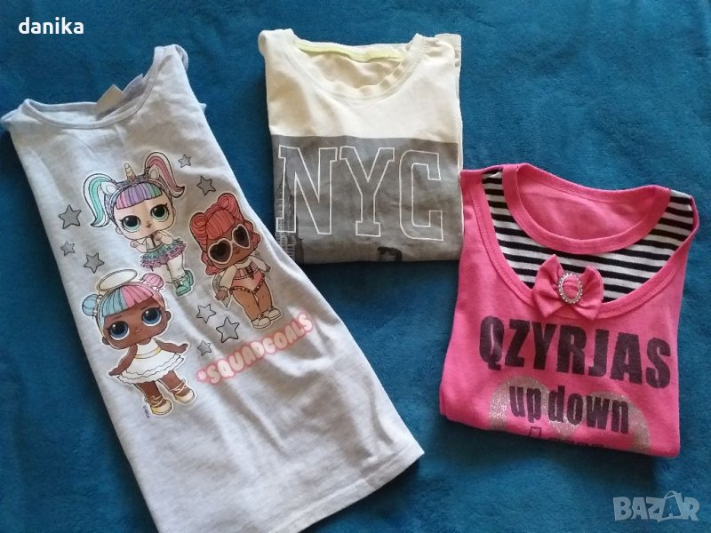 Лот от три тениски на H&M и LCW за ръст 146 / 152 + бюсхие Disney, рокличка kapural Jeans и памучно клинче . Отлично състояние.