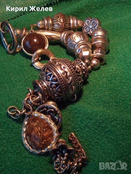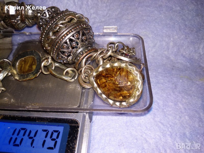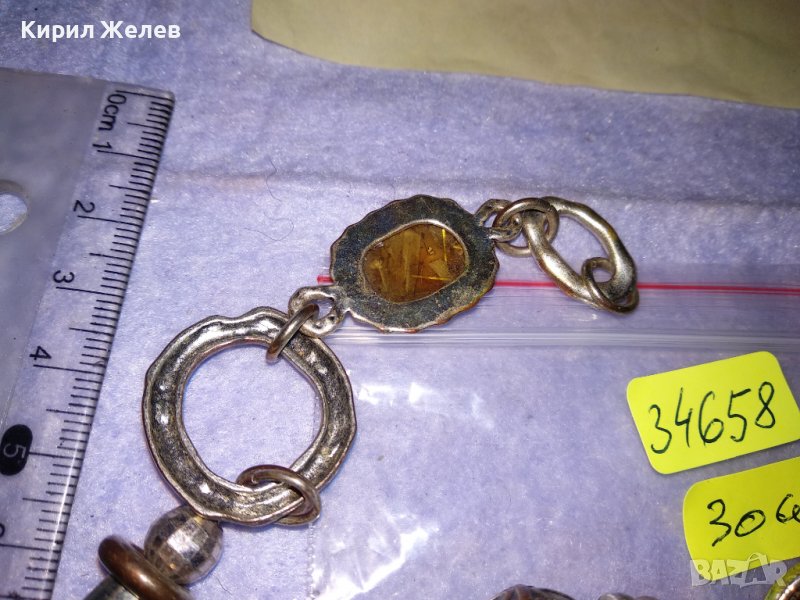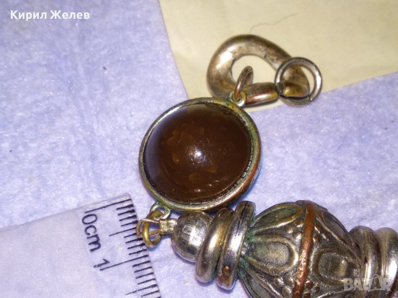ОРНАМЕНТИРАНО ПОСРЕБРЕНО МЕДНО ЕТНОГРАФСКО УКРАШЕНИЕ с ТОПЕН КЕХЛИБАР и РАЗНОЦВЕТНО КРИСТАЛЧЕ 34658