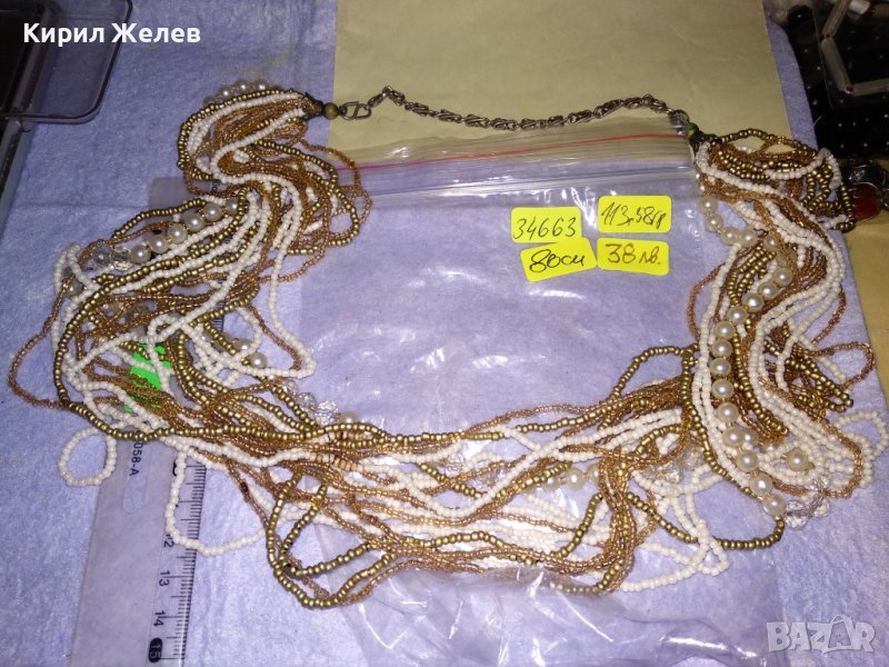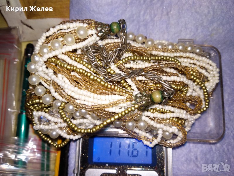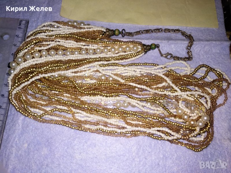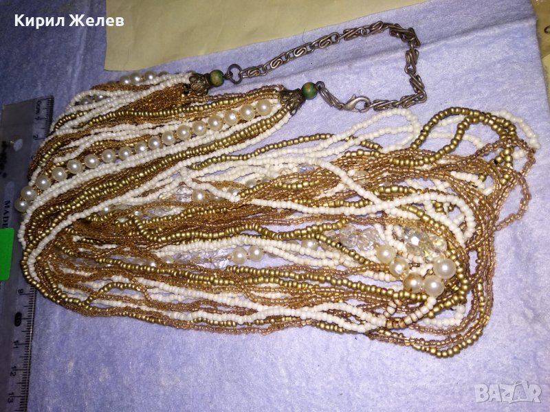 ВЕЛИКОЛЕПНА МЪНИСТЕНА ОГЪРЛИЦА ХИЛЯДИ РЪЧНО НИЗАНИ ЗВЕНА МЪНИСТА РЕТРО НАКИТ БИЖУ 34663