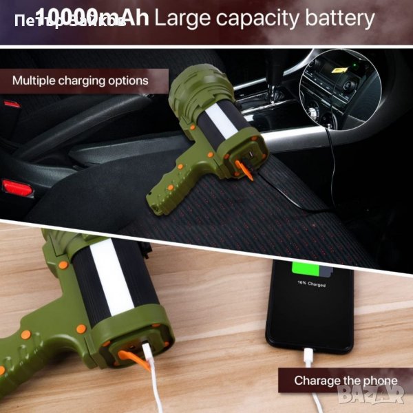 10000 mAh батерия с голям капацитет: Нашият акумулаторен прожектор е изграден с 10000 mAh батерии и с индикатор за захранване. Междувременно той е оборудван с устройство за защита от разреждане, което го прави по-безопасен, когато е презареден. Може да се използва и като захранваща банка за зареждане на вашия мобилен телефон или мобилно устройство при спешни случаи. Прожекторът се предлага за зареждане чрез AC/DC и USB.